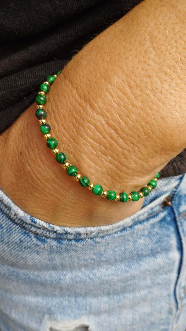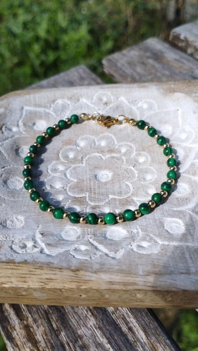 Bracelet en pierres minérales naturelles de Malachite, et acier inoxydable