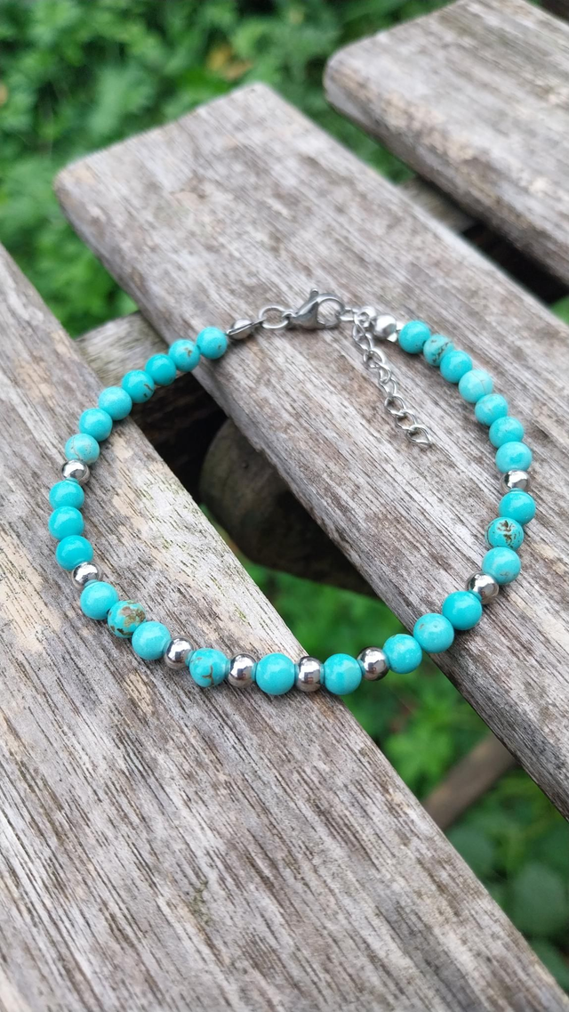 Bracelet en pierres de Turquoise, et acier inoxydable